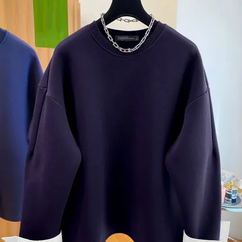 Men’s thickened round neck sweatshirt with warm lamb fleece lining; basic pullover top for men’s wear.